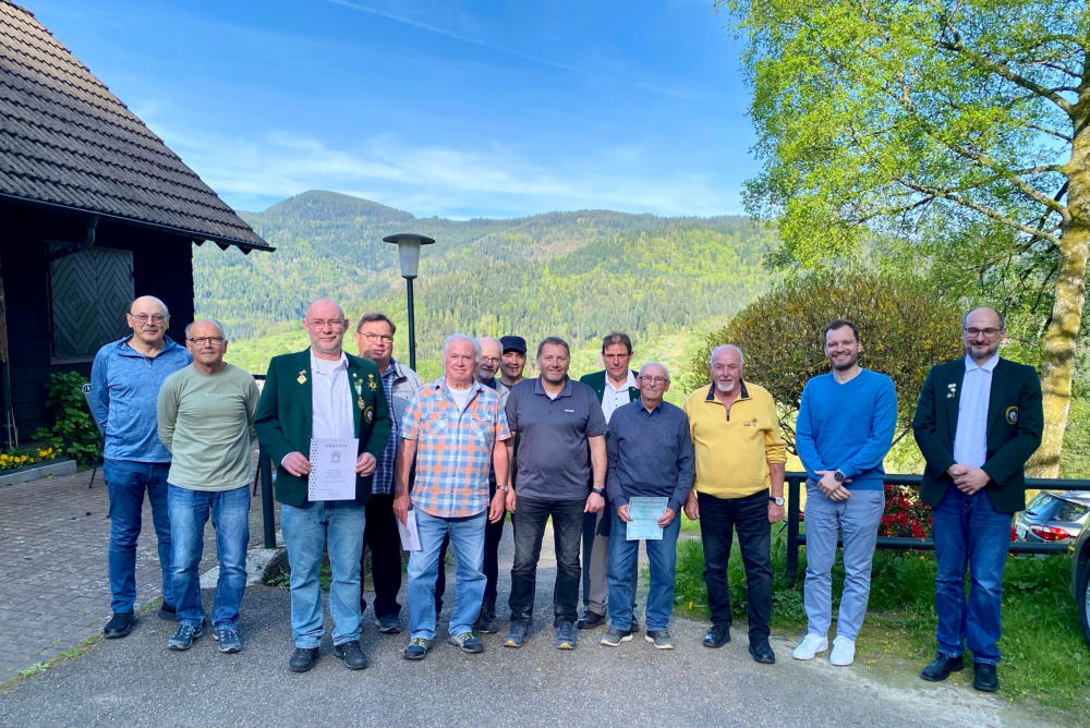 Heribert Wunsch wurde mit der goldenen Ehrennadel des Schützenkreises Hohenbaden geehrt. Auch Stefan Wunsch selbst wurde geehrt.