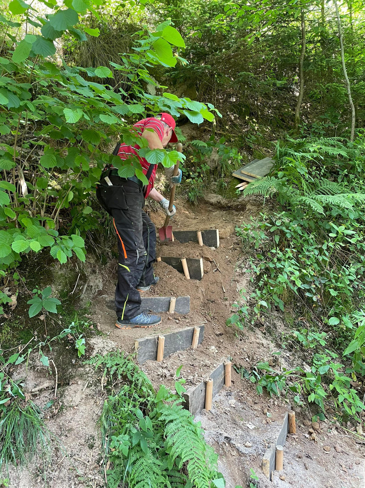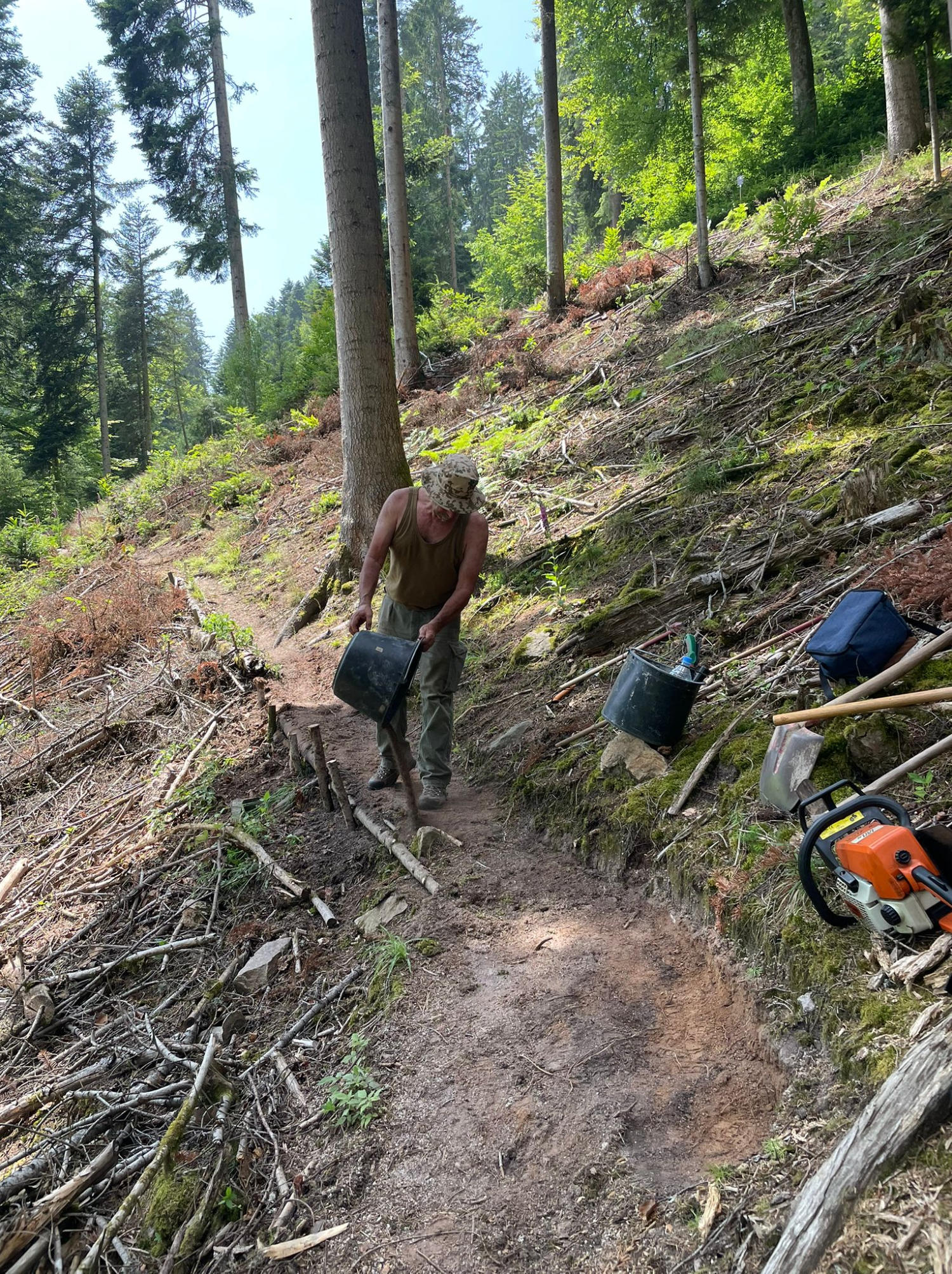 Die fleißigen Helfer setzten in strömendem Regen neue Tiere und ebneten neue Wege und besserten alte Wege aus.