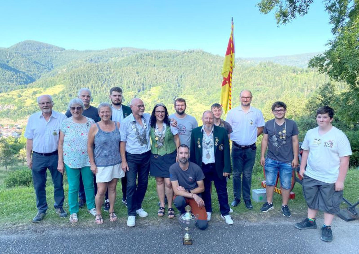Durch fortgeschrittene Technik konnte Finn Wacker eine Drohne steigen lassen und alle Mitglieder inkl. Ausblick auf Forbach ablichten.